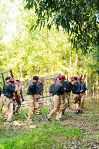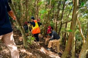 山ではグループに分かれてくくり罠、箱罠を仕掛けました