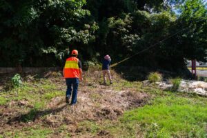 電流が4000v流れているか確認するためにテスターが必須ですが、まずは電気の流れを感じるためにそこに生えていた草に協力してもらって確認しました。