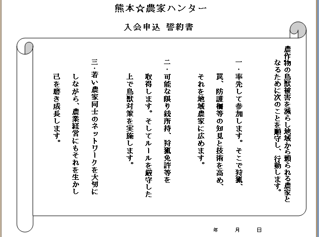 くまもと☆農家ハンターの入会申込の誓約書を作成しました。