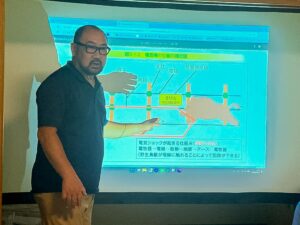 イノシシさんが多くいる地区、対策には餌付けSTOP対策が有効だということで、南小国町の農林課有害鳥獣担当の職員さんが企画され、地域の会合の一環で場が設けられました。