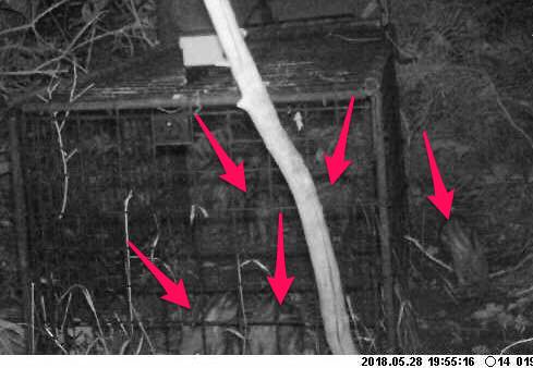 小さすぎて罠の隙間から抜け出したウリ坊5兄弟。