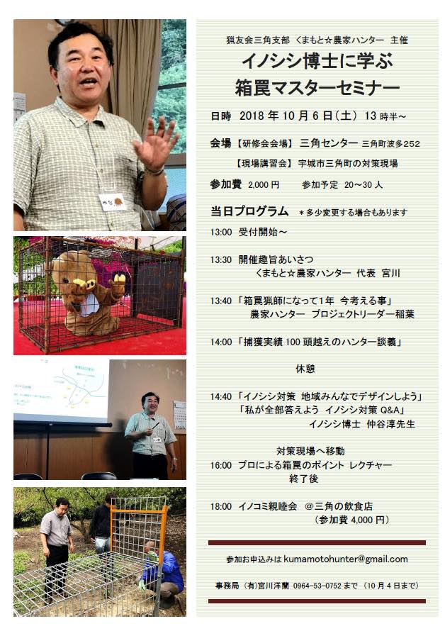 元農林水産省で現在、中央農研で30年以上にわたって イノシシ研究に没頭される仲谷淳先生を筑波から お招きして講習会を開催しました。