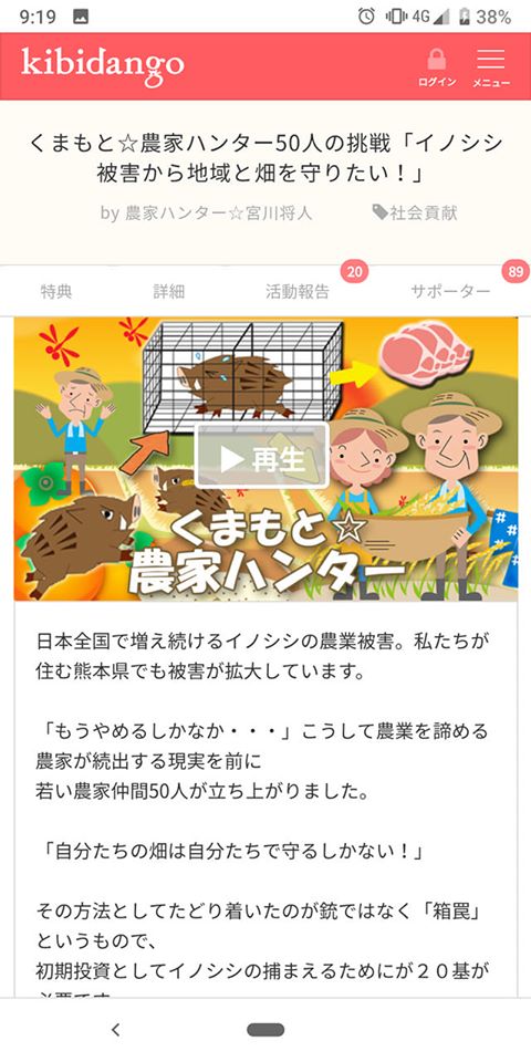 kibidangoのサイトで農家ハンター🐗のことを見つけ