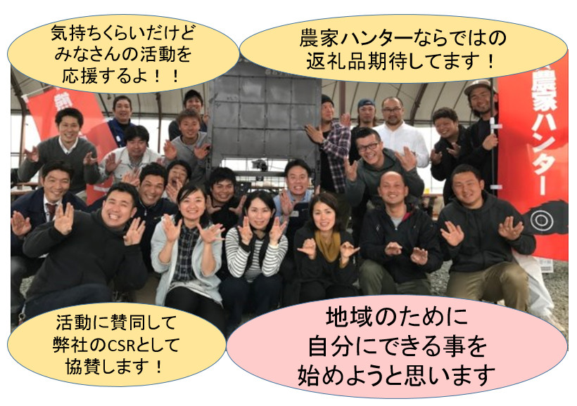 ご支援の返礼品は農家ハンター通信やメンバーが育てた農産物等々をお届け致します。