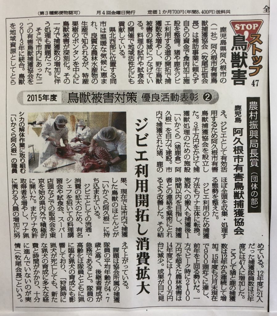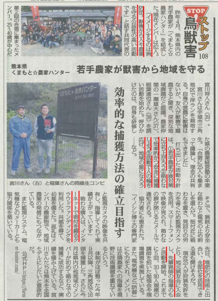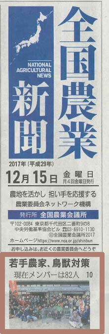 と題して「全国農業新聞 ストップ鳥獣害」コーナーに