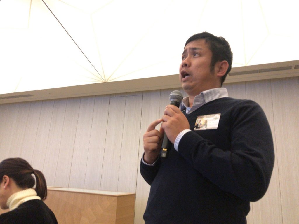 参加した150人の前で、取り組みやオープンした
