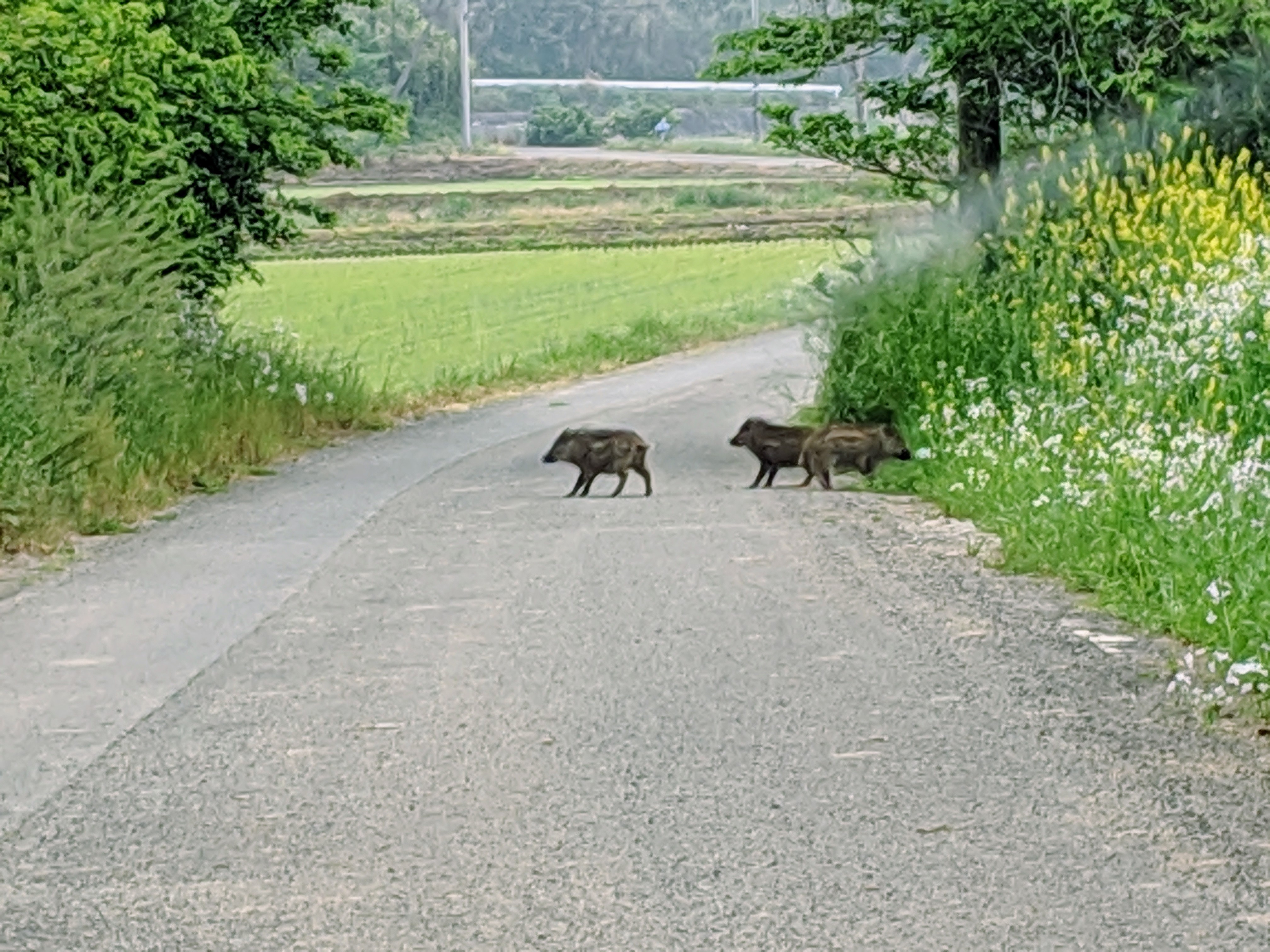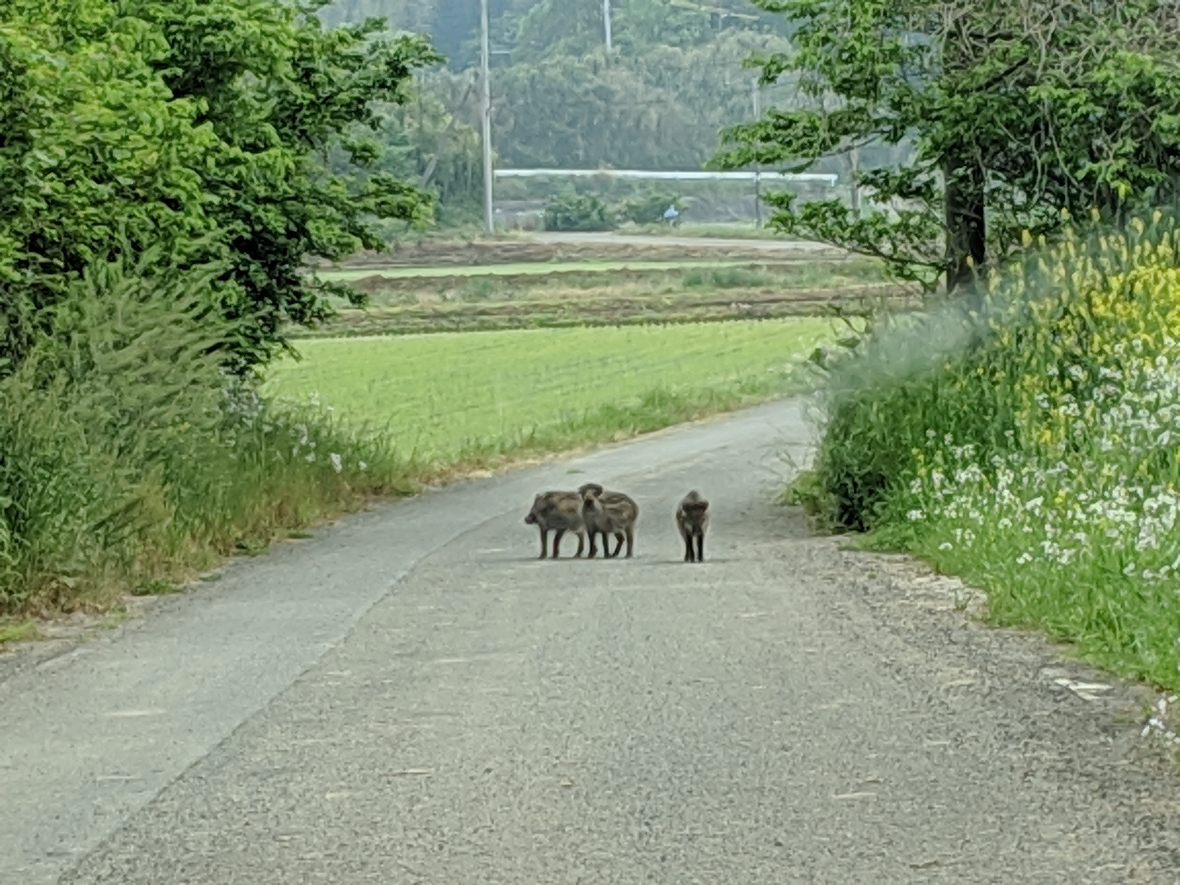 ここ戸馳島に来た当初3月頃はよく早朝にウリ坊の集団をよく見かけました!!