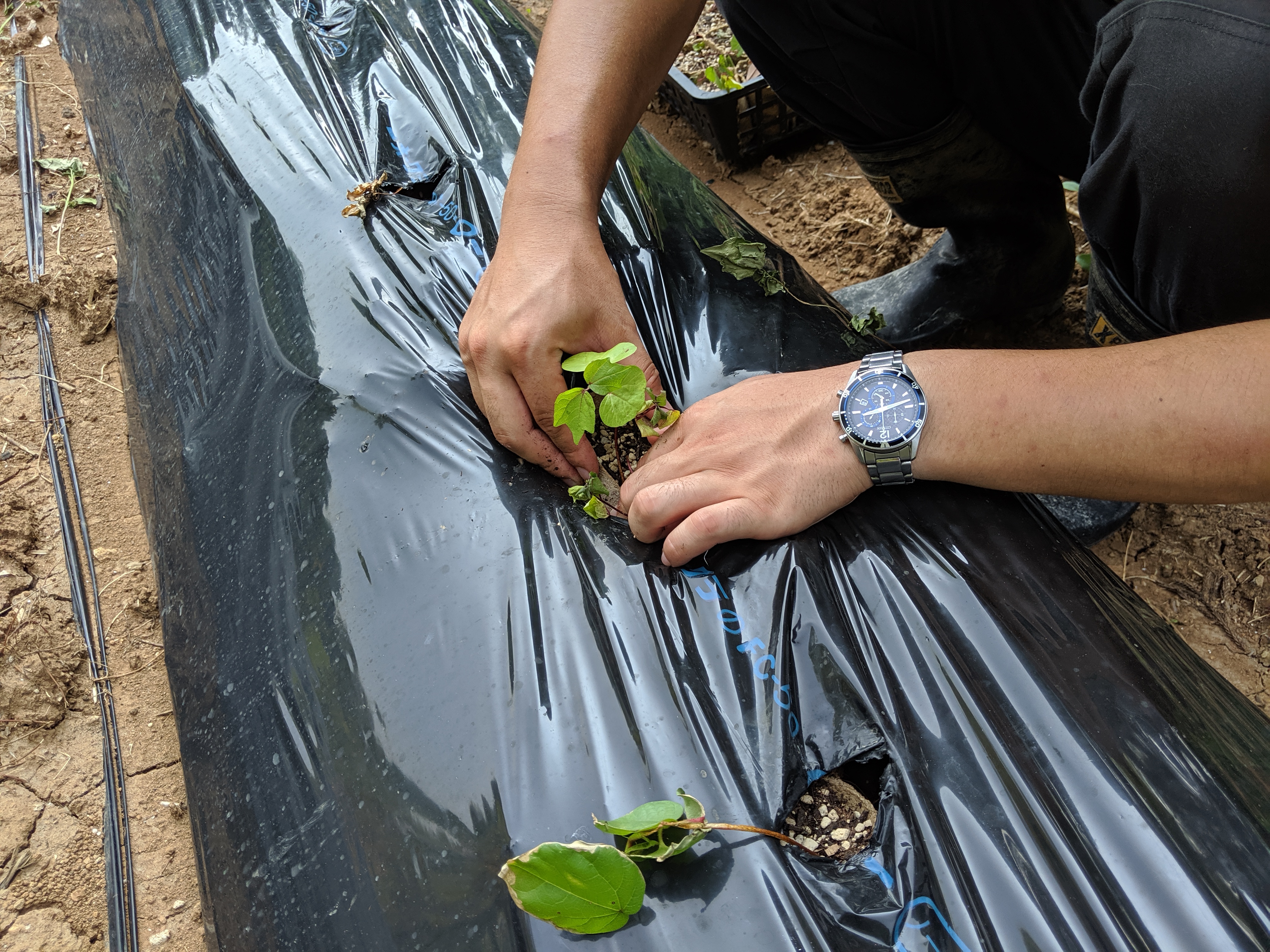 今回はその枯れてしまった苗に補充植え付けと新たに増やした畝に植え付けを行いました。