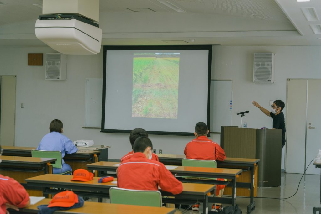 みんなが揃って、畑を守る稲葉たっちゃんから話がありました。