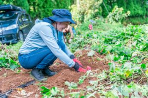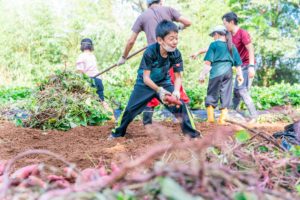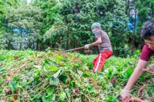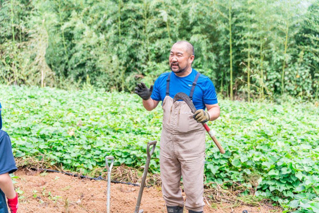 稲葉たっちゃんは、道の駅に売っているようなお芋の農家さんの多くは、機械ではなくこうやって体を使って葉を刈り、芋を掘っているのだと教えてくれました。