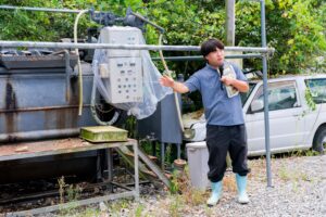 堆肥化の機械や、この機械が地域で果たす役割についてを話したり