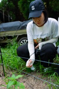 ワイヤーメッシュ柵がずらっと張ってある圃場へ行きました。