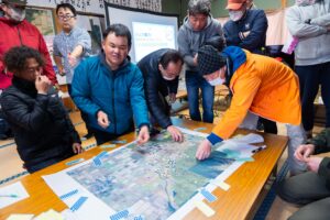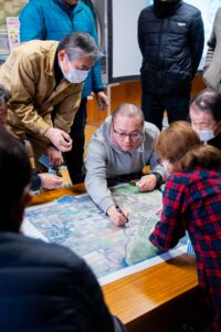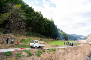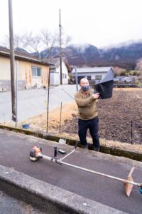 住民の方にお会いして最初の印象は、「平均年齢が低い!!」ということ。わたしは鳥獣対策に参加するのが60代だと若い印象を持つのですが、この地域は30代がメインで最年長のリーダーが64歳。このグループで竹チップを販売したり、ドローンで農地に消毒薬を撒いたりと、それまでも若手中心のみなさんがいろんなことに取り組んできました。