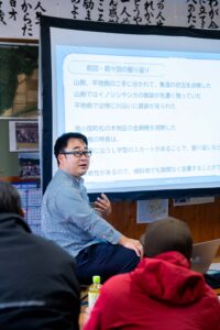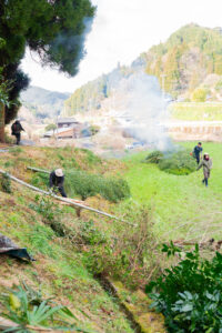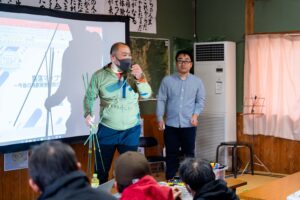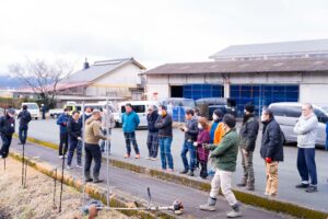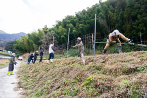 5年前、地域に鳥獣被害が出るようになってから、地域の若手が中心となって話し合いと対策を重ねてきました。そのなかで、イノシシを捕獲し、止め刺しし、肥料にして活用しよう、少しずつ実現していきたいねと地域の中で話していたところ、2024年の10月にたっちゃんのセミナーを行うこととなり、それからすぐに5人が狩猟免許を取得しました。