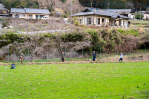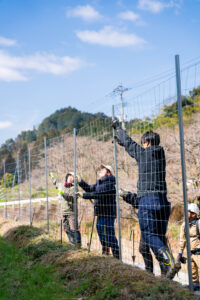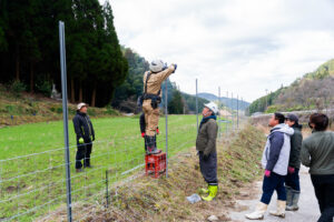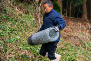熊本県北の地域のそこは四方を山に囲まれていて、動物たちの暮らす中に集落があるようなところでした。そこで住民の方を中心に、行政の方・柵メーカーの方・そして稲葉たっちゃんで金網柵を設置しました。